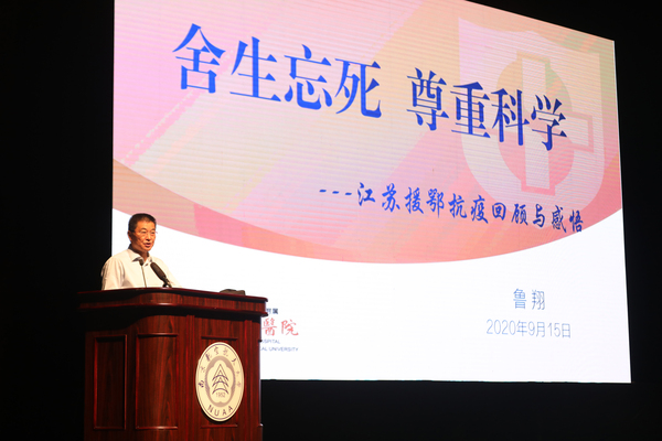 鲁翔作了题为《舍生忘死尊重科学——江苏援鄂抗疫回顾与感悟》的专题报告。他回顾了自己作为江苏援湖北疫情防控前方指挥部副总指挥和援黄石医疗队领队率领医护团队奋战一线的经历,生动再现了率队奔赴湖北抗击疫情的艰难情境,解读了伟大抗疫精神,用四个“前所未有”总结了他的切身经历和深刻感悟,分享了对疫情防控工作的思考。报告会后,师生与鲁翔进行了互动交流。鲁翔表示,面对突如其来的严重疫情,党中央统揽全局、果断决策,习近平总书记亲自指挥、亲自部署,中央政治局常委会、中央政治局召开21次会议研究决策。疫情防控凸显了举国体制和群众路线的制度优势,充分展现了“一方有难,八方支援”中国精神、中国力量和中国担当。