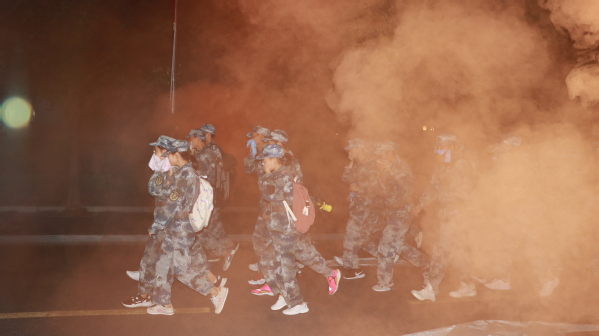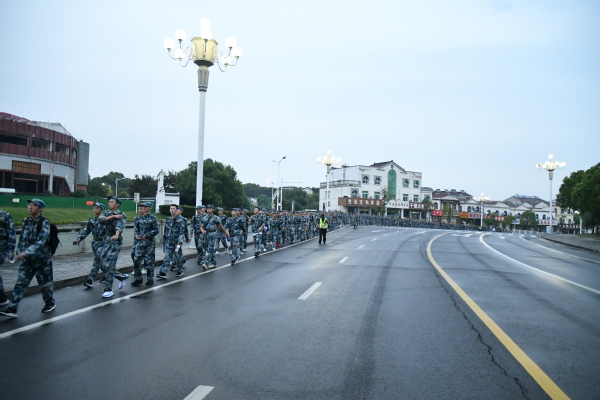 21日四点三十分,伴随着急促的哨声,将军路校区四千余名新生迅速集合,列阵聚集在西操场。清点人员完毕后,队伍浩浩荡荡开拔。此次拉练由将军路校区北门出发,环绕整个翠屏山步行前进,最终自西大门回到校园,全程约10公里。此次拉练设置了穿越“染毒地带”环节,经过染毒区时,同学们麻利地用湿毛巾捂住口鼻,井然有序,迅速突破。拉练队伍进入翠屏山风景区后,一场大雨不期而至,同学们互相加油鼓劲,各学院副书记和辅导员率先走在队伍前列。七点左右,拉练队伍返回校园。