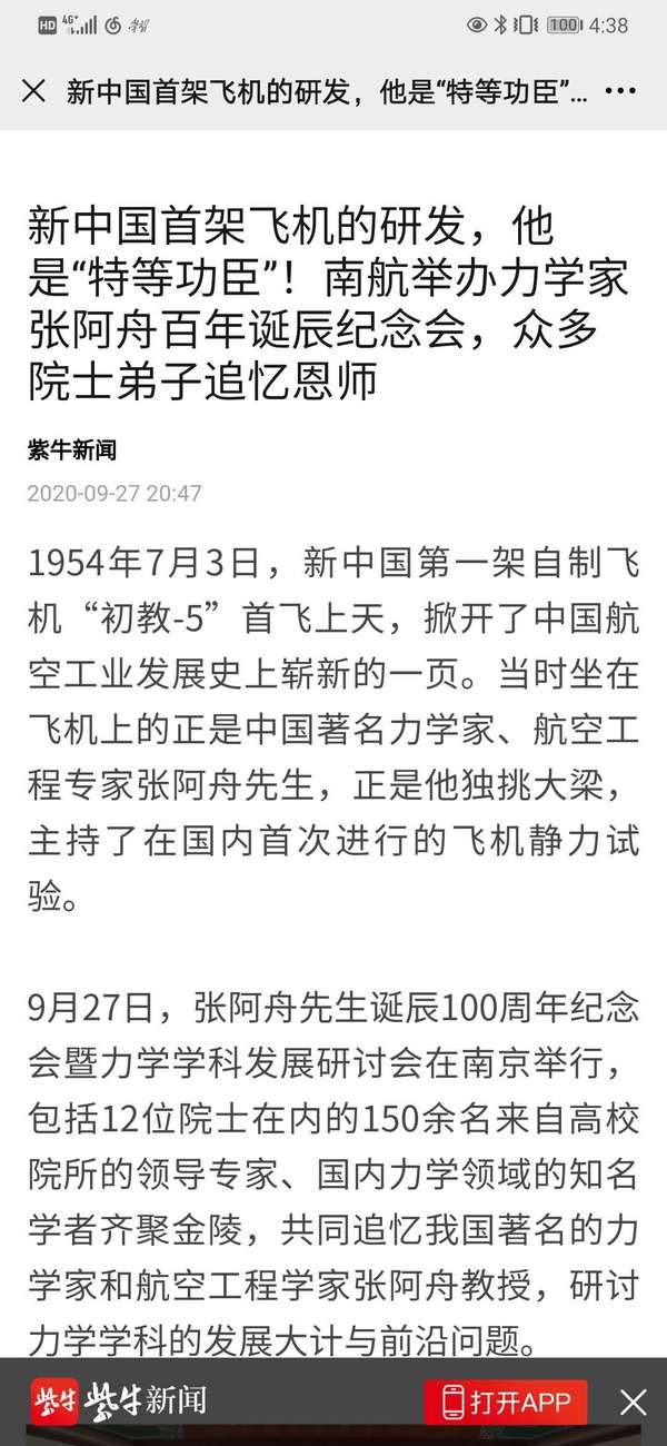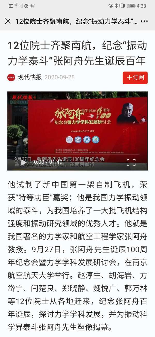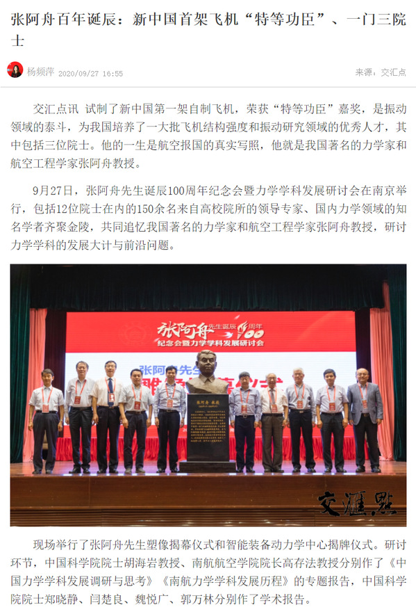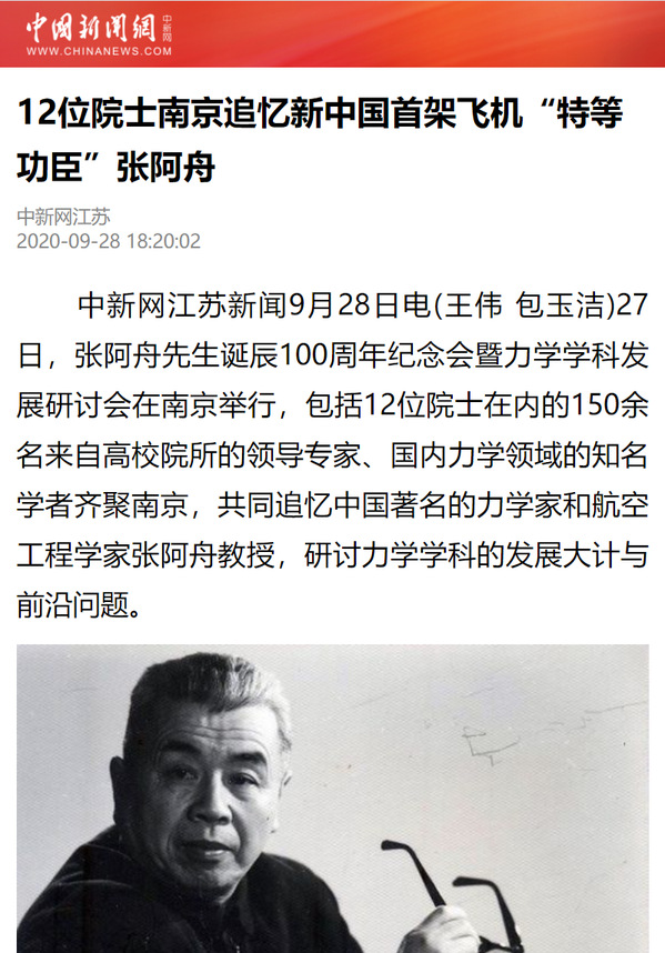 扬子晚报紫牛新闻:新中国首架飞机的研发,他是“特等功臣”!南航举办力学家张阿舟百年诞辰纪念会,众多院士弟子追忆恩师