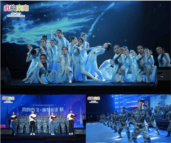 此外,我校同学们还为大家带来了一场精彩的视觉盛宴。大学生艺术团表演舞蹈《逐梦云天外》,书写了南航人潜心钻研、艰苦奋斗,助力国产大飞机C919首飞的心路历程。新生宣言《逐梦起航》、啦啦操、街舞、十佳歌手表演、新生军训展示《活力青春》、高校互动联唱《仰望星空》、《歌唱祖国+我们都是追梦人》,精彩的节目点燃了现场的热情,将气氛推向高潮。