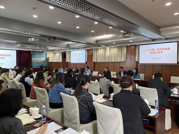 部署动员大会结束后,为期一周的巡察工作集中培训正式启动。杭育新以《高质量推进校内巡察》为题为巡察组全体成员做了专题培训。