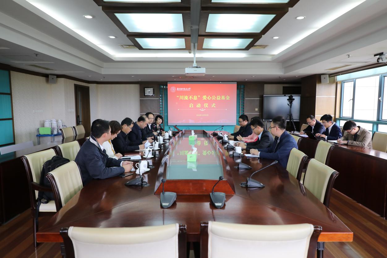 10月20日下午,“川流不息”爱心公益基金启动仪式在明故宫校区综合楼820会议室举行。校长、中国工程院院士单忠德,校党委副书记、教育发展基金会理事长陶勇,校党委常委、宣传部部长王晖,相关部门负责人以及“川流不息”思政教育团队成员出席活动。陶勇主持启动仪式。