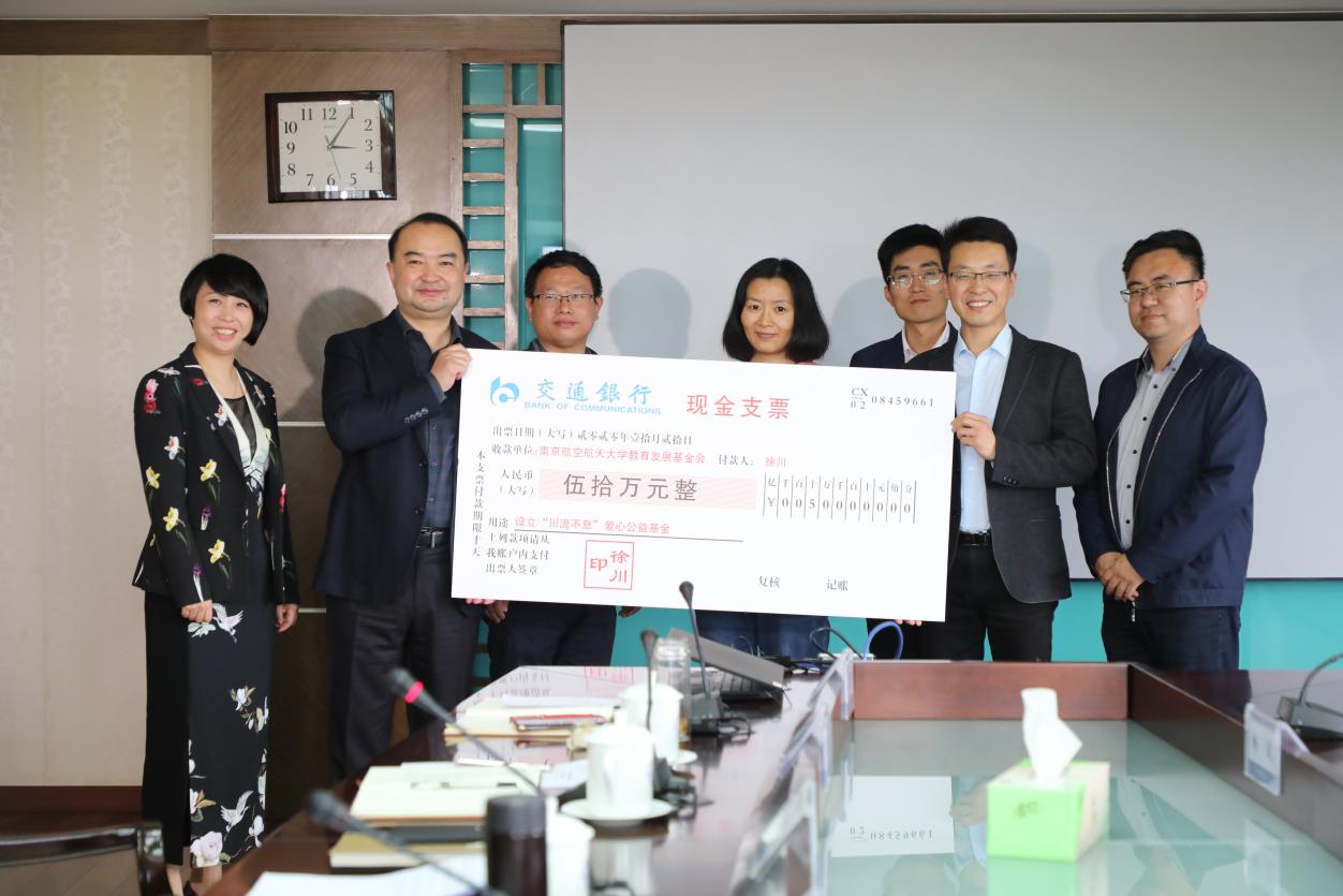 据悉,“川流不息”爱心公益基金是南京航空航天大学徐川等老师和南京航空航天大学教育发展基金会于2018年共同发起设立的专项公益基金,旨在倡导热心公益、反哺学生的良好风尚。截至2020年10月,收到徐川团队捐赠共计50万元。公益基金用于学生本人或家庭因遭遇重大变故导致家庭经济困难,提供应急补助,帮助其度过难关,顺利完成学业。