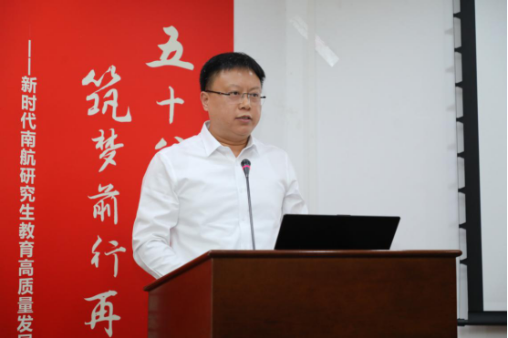 10月21日上午,“‘五十八载奋进路,筑梦前行再远航’--新时代南航研究生教育高质量发展启动会”在我校明故宫校区图书馆4楼报告厅举行。校长、中国工程院院士单忠德,副校长、研究生院院长施大宁,党委副书记陶勇,校党委常委、组织部部长李遥,党委常委、宣传部/教师工作部部长王晖,校长助理、党政办主任刘宇雷,校友代表、研究生院部分老领导、相关职能部门负责同志、各学院院长、分管研究生教育的副院长和副书记、教师代表等一百余人参加了启动会。会议由副校长施大宁主持。