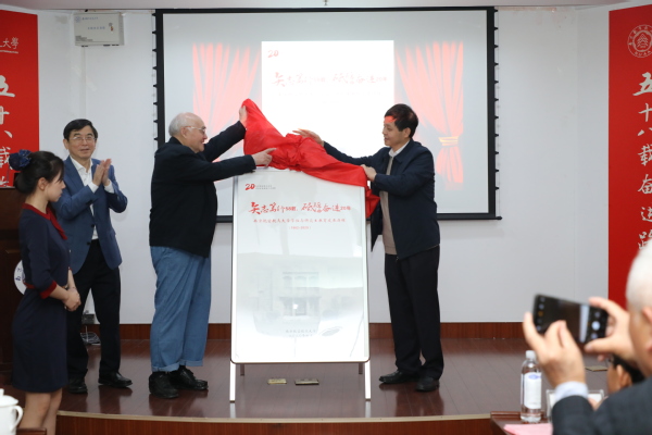 朱剑英、聂宏共同为《南京航空航天大学学位与研究生教育发展历程》报告揭幕。《南京航空航天大学学位与研究生教育发展历程》报告分三个阶段,从授权学科、导师队伍、建立研究生院等多个专题全面梳理总结了学校学位与研究生教育五十八年的发展历史、改革举措及建设成果。