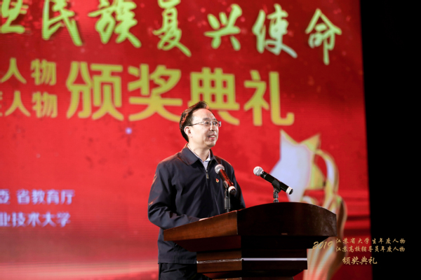 11月15日,由江苏省委教育工委、江苏省教育厅主办的“2019江苏省大学生年度人物和江苏高校辅导员年度人物”颁奖典礼在南京工业职业技术大学举行。省委教育工委书记、省教育厅厅长葛道凯,省委宣传部副部长葛莱,省委教育工委委员、省教育厅党组成员汪国培,新华日报社党委委员、纪委书记赵准,团省委副书记张迎春和来自全省高校的领导、老师、学生代表共500多人参加了颁奖典礼,校党委副书记、纪委书记杭育新应邀出席了活动。