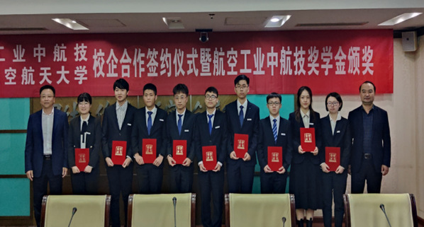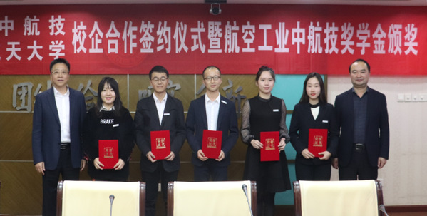 约仪式结束后,航空学院本科生聂连瑞作为航空工业中航技奖学金获奖学生代表发言。最后,双方领导共同为获得2020年航空工业中航技奖学金的同学颁发了荣誉证书。
