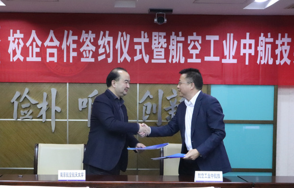 唐建明和陶勇分别代表航空工业中航技进出口有限责任公司和南京航空航天大学签署了新一轮校企合作人才培养专项协议。