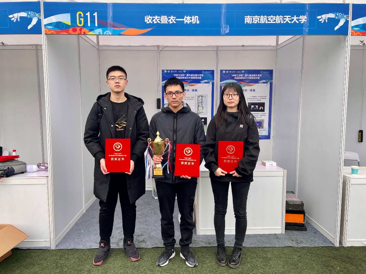 11月20日至22日,第九届全国机械创新设计大赛在成都西南交通大学成功举行。经过校赛、省赛及全国决赛初评,我校航空学院金海波副教授和机电学院侯新闻老师指导的由机器人研创班贺游、李雯、颜治毅、李霖杰、韩笑等五位同学申报的“收衣叠衣一体机”在全国30个省(直辖市、自治区)678所高校报送的4719件参赛作品中脱颖而出,成功入围决赛现场展评,并凭借创新的设计理念和精湛的制作工艺,荣获第九届全国机械创新设计大赛最高奖项国家一等奖,并被推荐参加2021年“中国好设计”奖评选。我校也成为自2014年起连续四届荣获该项赛事一等奖的唯一一所江苏省普通高校。