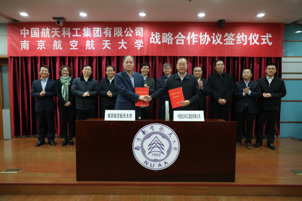 11月25日,中国航天科工集团有限公司与南京航空航天大学战略合作框架协议签约仪式在我校举行。中国航天科工集团董事长袁洁,副总经理龚波,校党委书记郑永安,校长单忠德,副校长许希武、姜斌以及校企双方有关负责同志出席签约仪式。龚波与许希武代表双方签署战略合作协议。单忠德主持签约仪式。