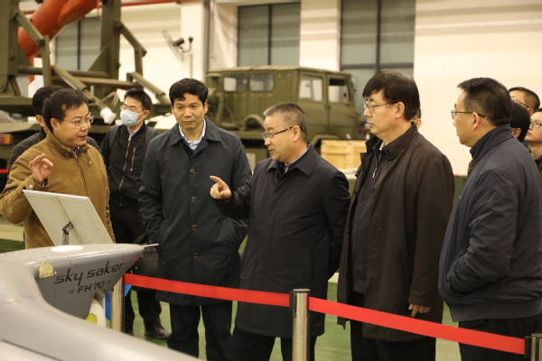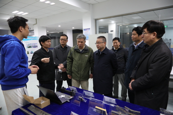 田玉龙一行首先到无人机研究院参观,详细了解了长空系列靶机、鸿雁和飞鹰系列无人机装备研制生产情况。随后又到能源与动力学院、机械结构力学及控制国家重点实验室参观,了解了航空发动机进排气设计、综合热管理、高效能源利用、结构强度、先进控制技术等方面的研究现状及软件系统设计水平,调研了飞行器结构健康监测、超声电机、多功能轻量化材料及二维平面气浮平台的相关研究进展及实际工程应用情况。