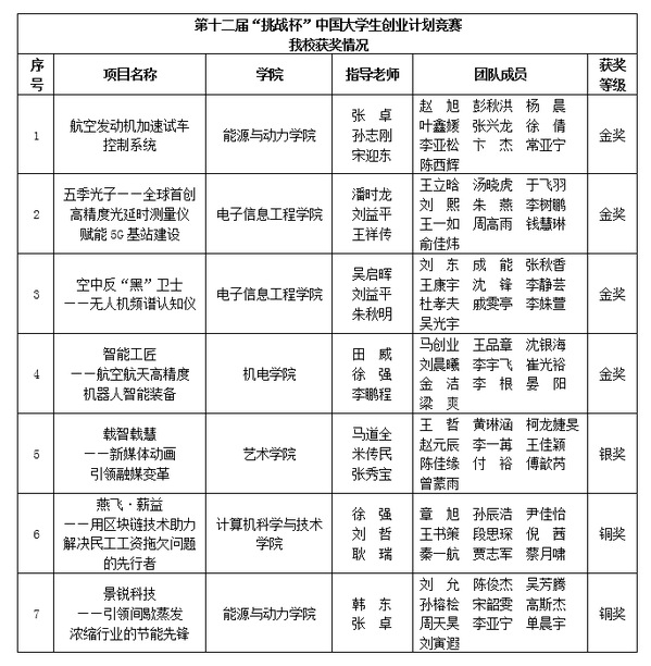 12月1日,第十二届“挑战杯”中国大学生创业计划竞赛全国决赛获奖结果公布,我校共有7个项目入围全国决赛,经过网络评审和线上终审答辩,喜获金奖4项、银奖1项、铜奖2项,金奖数位列全国第五,续写了南航大学生创新创业的辉煌。