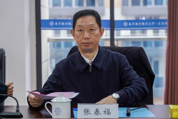 在调研座谈会上,张春福首先介绍了此次调研的背景,说明了常州市委下达的市领导联系院校开展“五个一”活动的要求。他表示,作为进驻溧阳市的第一所大学,南航天目湖校区的投入使用极大拉动了溧阳市及周边地区的经济发展,提升了当地的人文学术氛围,常州市委将继续大力支持校区建设,尽可能为校区发展提供便利。张春福希望溧阳与南航全面落实合作办学内容,在办学实践中探索更深层次的发展,校区要做实做细做好学生工作,引导广大师生增强“四个意识”、坚定“四个自信”、做到“两个维护”,推进全面从严治党,落实好立德树人的根本任务。