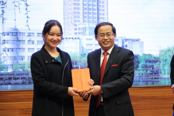 单忠德结合自身的学习、科研、工作经历,回答了学生提问,深入浅出地讲述了大学生培养责任意识、提升创新能力、开拓国际视野的具体路径,亦师亦友、风趣幽默的回答引来同学们阵阵掌声。活动最后,他向学生代表赠送了印有寄语的笔记本,表达了对同学们的殷切希望。