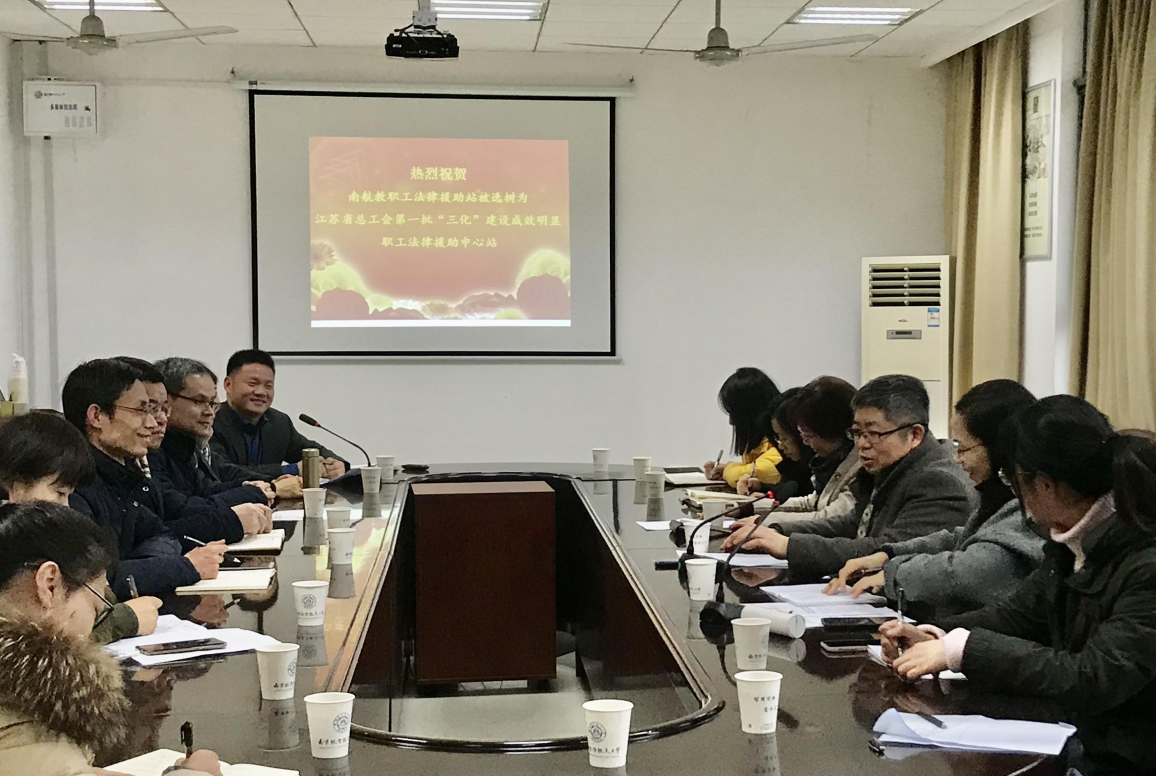 近日,我校表彰南航教职工法律援助站被江苏省总工会评选为第一批“三化”建设成效明显职工法律援助站。校党委常委、组织部部长李遥出席表彰会议,校工会常务副主席余春玲、副主席谢瑶、人文与社会科学学院领导班子成员、将军路校区部分院级工会主席、法律援助站的教师代表参加了会议。