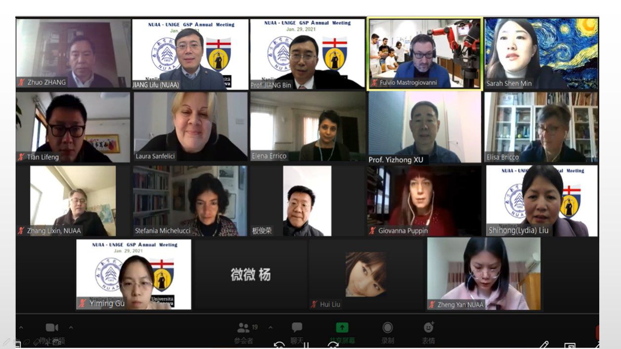 姜斌代表我校对仍在同新冠疫情斗争中的意大利热那亚大学师生们表示关切与问候,然后介绍了南航基本情况及其与意大利热那亚大学的合作基础,希望双方结合优势学科,在师资队伍建设和外语类高层次人才培养方面加强合作,同时可将合作领域拓展至人工智能,信息技术等专业,进一步推进战略合作伙伴关系,提升合作广度和深度。