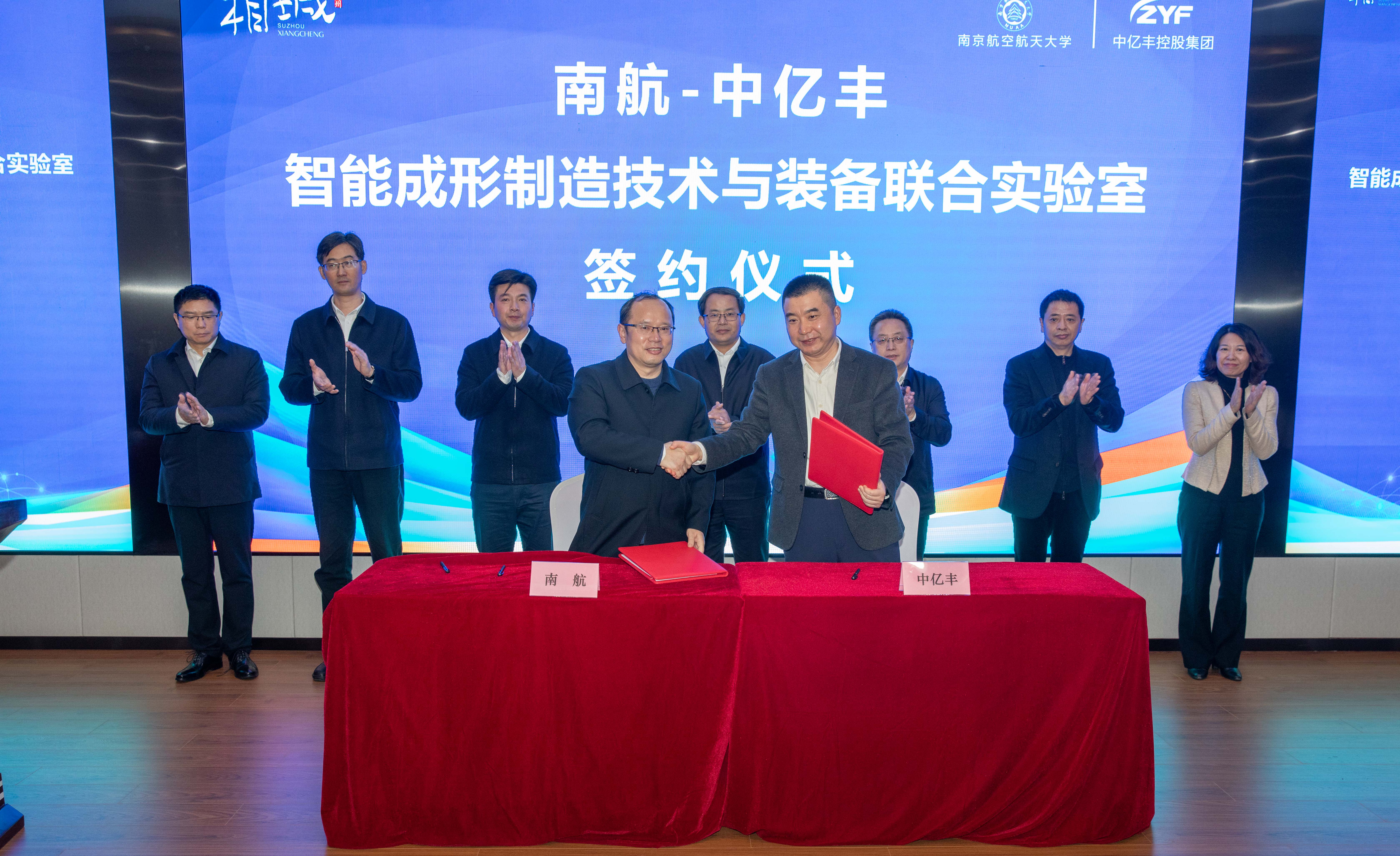单忠德,苏州相城区委书记顾海东共同为南航-中亿丰集团智能成形制造技术与装备联合实验室揭牌。校科研院副院长、高新处处长沈建新和中亿丰集团副总裁、总工程师李国建代表双方签署了联合实验室协议。苏州市政府副秘书长蒋华,中亿丰集团董事长宫长义、中亿丰建设集团总裁邹建刚等参加揭牌活动。据悉,联合实验室将在铝合金产品自动化生产技术与装备、先进材料成行技术与装备、智能检测技术与装备等方面开展联合创新。