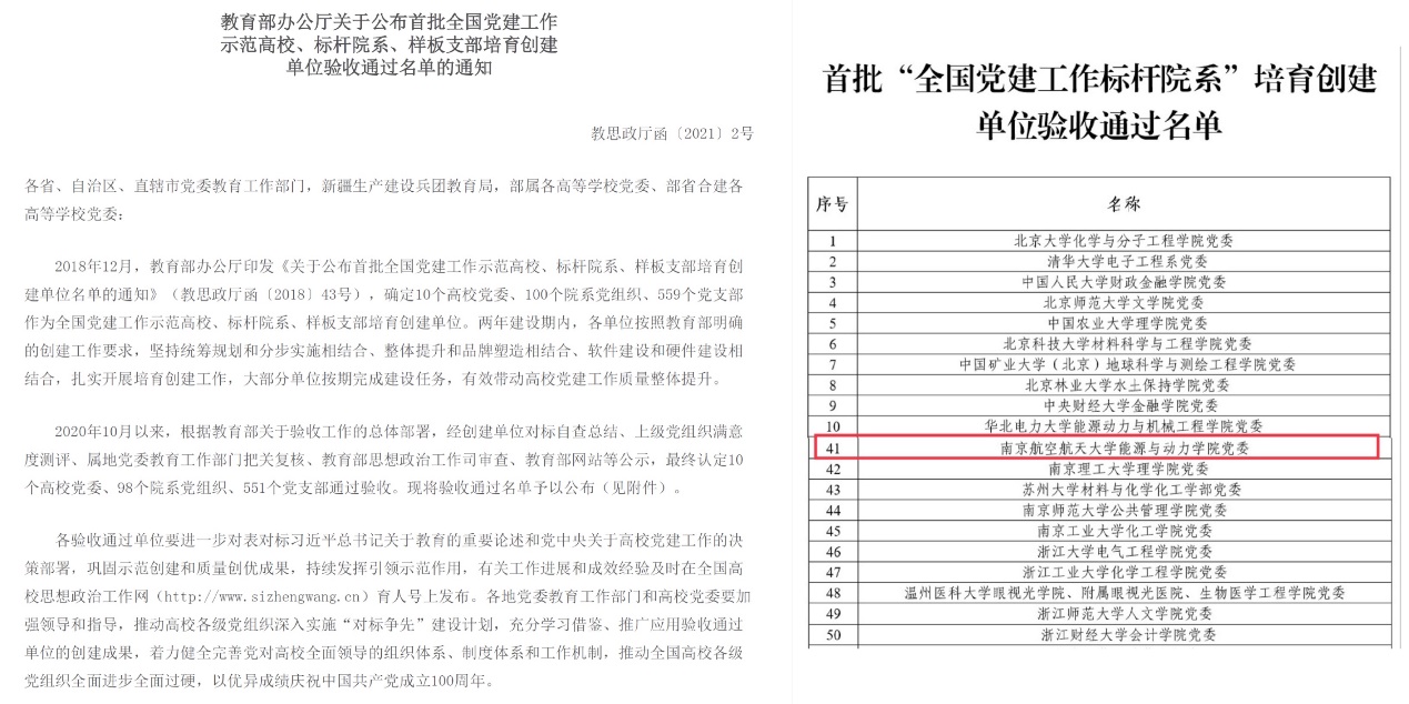 根据教育部相关验收工作的要求,经学院对标自查总结、学校组织的满意度测评、江苏省委教育工委把关复核、教育部思想政治工作司审查、教育部网站公示等环节,近日我校能源与动力学院党委顺利通过首批“全国党建工作标杆院系”培育创建单位验收。