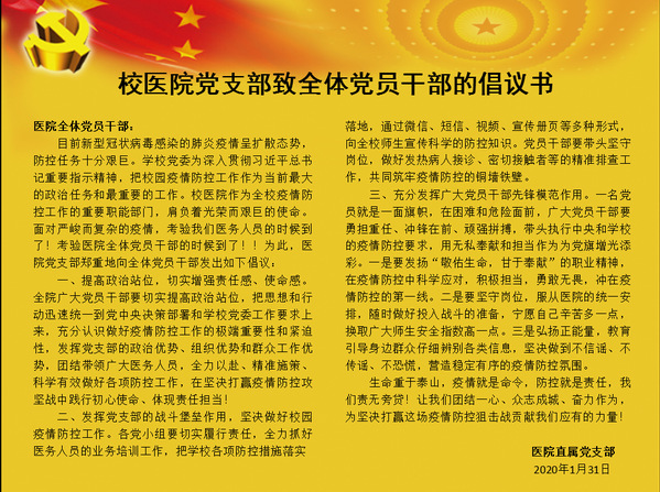 反应迅速,积极应对。早在1月21日,疫情爆发伊始,医院就紧急召开会议,学习研讨“新型冠状病毒感染的肺炎”相关知识并对防控工作进行部署安排。为确保各项防控措施落到实处,严防疫情在校园内发生和蔓延,医院紧急成立了由医院院长任组长,副院长任副组长,各科主任为成员的医院疫情防控工作领导小组,负责统一领导和指挥院内疫情防控工作。通过多种形式组织全体医务人员加强对“新冠肺炎”相关知识的学习和防控能力培训;提高院内感染防控级别;设置预检分诊流程,增加门(急)诊发热病人流行病学调查、分类处置、跟踪管理等工作,设置医院临时隔离场所,合理调配加强三校区医院医务人员排班,加强临床一线预检分诊、门急诊、发热处置力量;紧急采购防控药品和防控物资;组织协调医院多部门积极应对疫情变化,保持与各校区属地疾控中心24小时联系,严格规范传染病上报制度,做好校内疫情监测、排查、网络直报等工作;充分发挥专业优势,先后制订了29份各类疫情防控预案和措施,配合学校疫情防控工作组制定并落实校园“两案九制”,努力筑牢校园疫情防控第一道防线。
