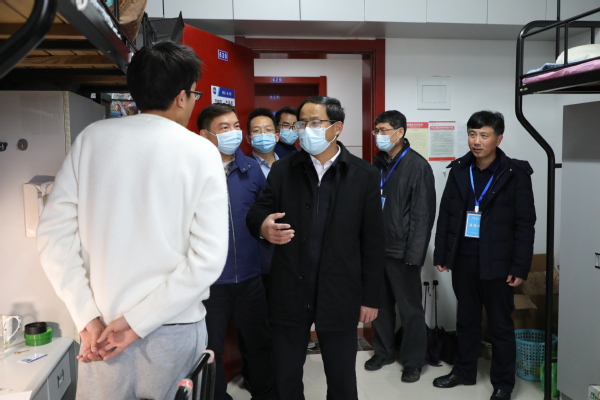 近日,校党委书记郑永安,校长单忠德,副校长施大宁,党委副书记陶勇,校长助理黄炳辉、刘宇雷深入一线走访看望返校学生,检查指导开学返校和疫情防控工作。