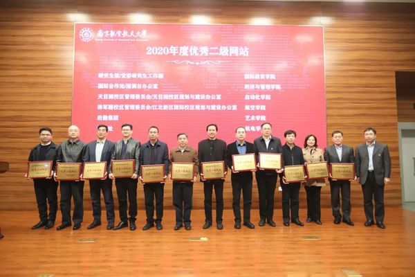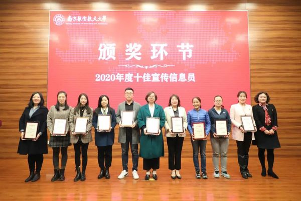 会上颁发了2020年度十佳宣传信息员、好新闻奖、金评论奖、2019-2020年校园文化品牌项目、优秀二级网站等奖项,杭育新、李遥、王晖分别为获奖个人和集体颁奖。