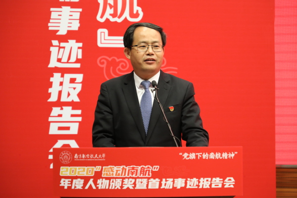3月30日,“党旗下的南航精神”2020“感动南航”年度人物颁奖暨首场事迹报告会在将军路校区一号楼举行,校长单忠德,校党委副书记、纪委书记杭育新,校党委常委、宣传部/教师工作部部长王晖出席会议,会议由2015“感动南航”年度人物顾冬冬教授主持。