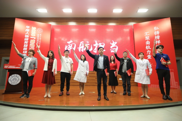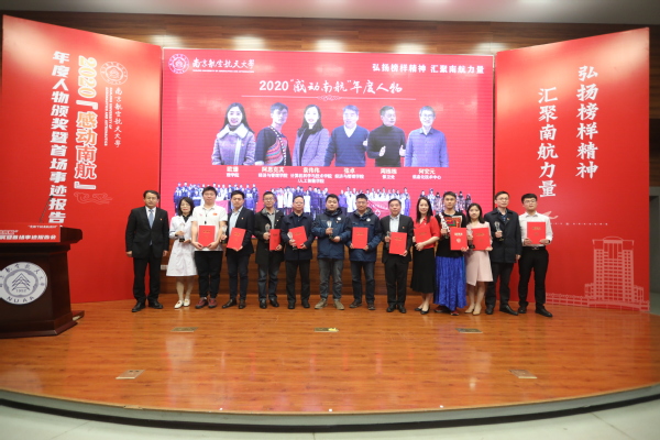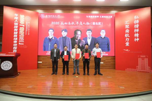 单忠德、杭育新分别为2020“感动南航”年度人物获得者及提名奖获得者颁奖。