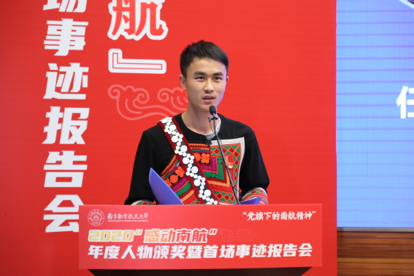 2020“感动南航”年度人物、CK长空靶机供靶团队代表张元杰讲述了团队在戈壁沙漠铸就“国之重器”的故事,理学院团委书记、辅导员欧珊讲述深耕学生工作、精准学风建设的经历,经济与管理学院教授、国际合作处处长张卓讲述了自己十几年如一日陪伴学生点亮创新创业梦想的故事,能源与动力学院车辆智能线控系统“五好”导学团队成员高犇同学讲述了团队在导师赵万忠教授的带领下,不断创新、取得突破的故事,经济与管理学院学生阿恩克其讲述了自己创建支教团队、助力家乡扶贫的故事。
