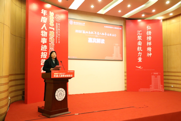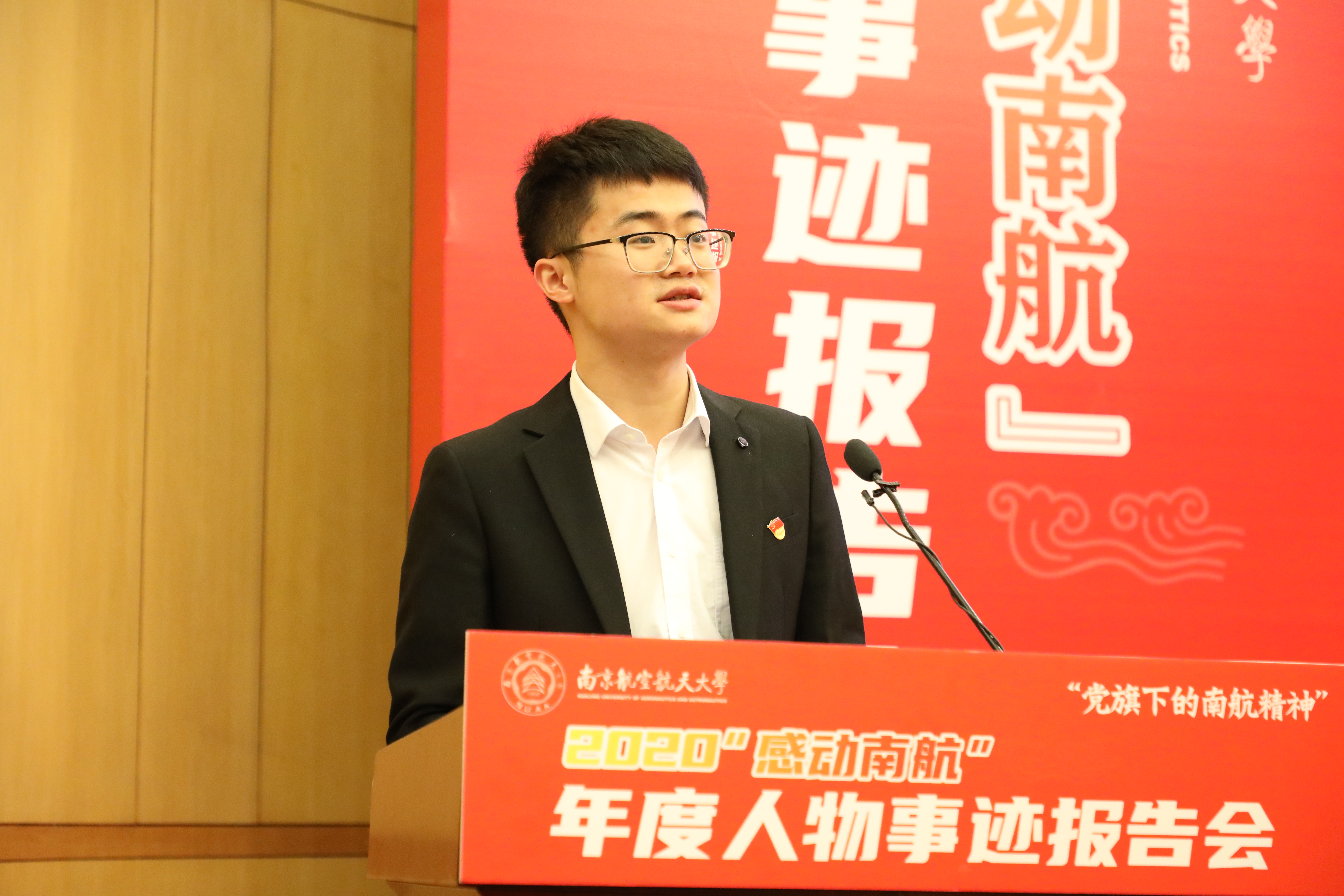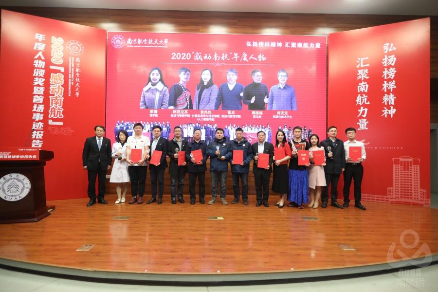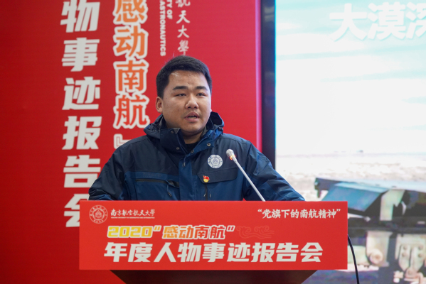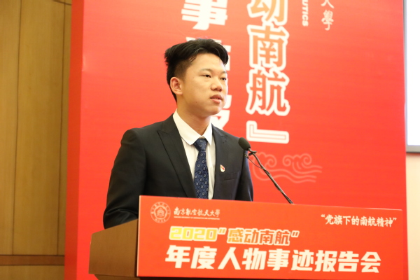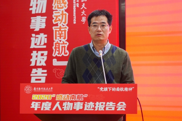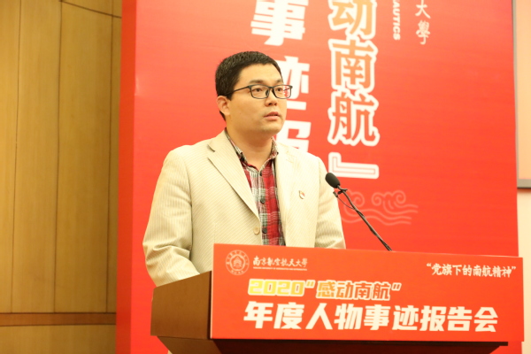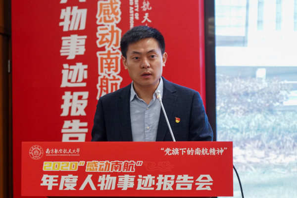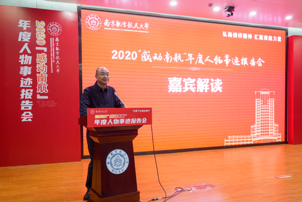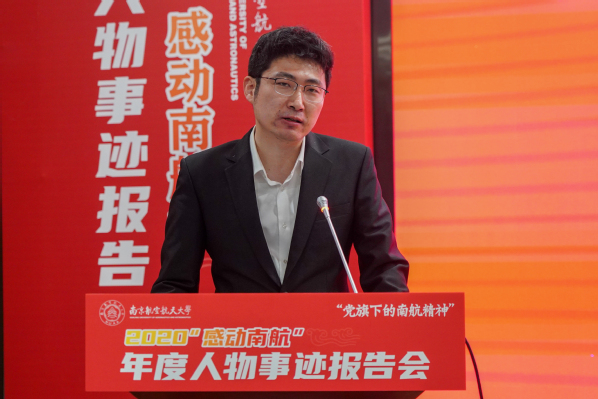 3月30日上午,“党旗下的南航精神”2020“感动南航”年度人物颁奖暨首场事迹报告会在将军路校区举行,报告会由2015“感动南航”年度人物顾冬冬教授主持。报告会上无人机研究院CK长空靶机供靶团队,理学院团委书记、辅导员欧珊,经济与管理学院教授、国际合作处处长张卓,能源与动力学院车辆智能线控系统“五好”导学团队分享了自己的奋斗故事,由计算机科学与技术学院/人工智能学院袁伟伟、信息化技术中心系统资源部主任何安元、保卫处治安管理科科长周栋栋、为生命奔跑团队、校医院抗疫集体共同演绎的诗朗诵《平安南航,校园担当》振奋人心、催人奋进。报告会现场为2020“感动南航”年度人物和提名奖获得者颁奖。