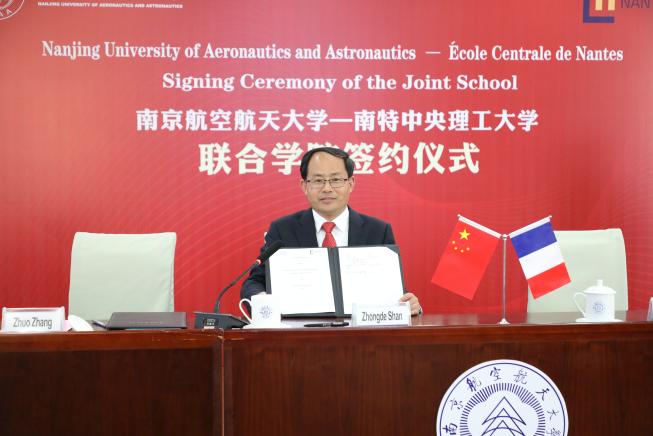 随后,单忠德与Jean-Baptiste Avrillier共同签署了南京航空航天大学-南特中央理工大学联合学院协议。