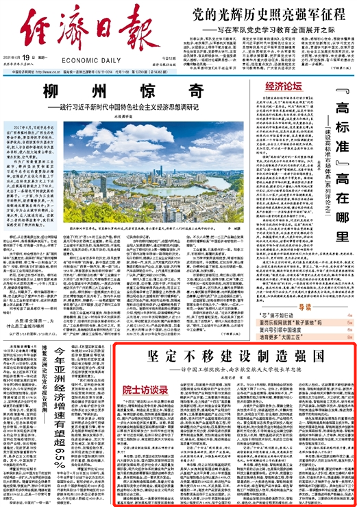 编者按:4月19日,《经济日报》就“制造强国”相关话题专访我校校长单忠德院士,于头版刊载文章《坚定不移建设制造强国》,现转发全文如下: