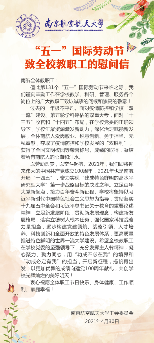 “五一”国际劳动节致全校教职工的慰问信