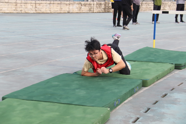 今年,有着46年历史的五四火炬接力开拓创新,每个参赛队伍都加入了教师代表,并组建机关部门代表队,师生接力,同场竞技。同时,开设“跃动传星火——红色越野接力赛”专场,加入了党史学习元素,通过越野项目创新党史学习教育形式,用匍匐前进模拟红军过草地,用引体向上模拟红军爬雪山,用划船机模拟红军长征两万五千里,用党史知识问答丰富智力闯关,带领青年学生亲身体验中国人民从站起来到强起来的艰辛历程,切实培育青年投身中国特色社会主义现代化国家的坚定信心。