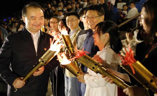 当晚,我校2021年“薪火相传”五四火炬接力活动在将军路校区西区田径场举行。校长单忠德、校党委副书记陶勇、宣传部、机关党委、学工部、研工部、将军路校区管委会、体育部、校团委和各学院的相关负责同志出席活动,18个院级单位的师生代表到场参赛。