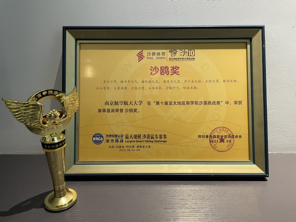 据了解,“亚沙赛”于2012年由16所商学院共同发起,是在亚太地区顶级商学院的MBA学员群体中展开的一项竞技体验式文化赛事,每年“五一”期间在内蒙古腾格里沙漠举行。如今的参赛院校覆盖中国、新加坡、澳大利亚、英国、美国等国家和地区的100多所顶级商学院,成长为覆盖地区最广的商学院赛事,今年的“沙10”更被世界纪录(WRCA)官方认证为全球“最大规模的沙漠徒步挑战赛”。我校MBA师生曾在沙4、沙8、沙9比赛中捧回过赛事最高奖项“沙鸥杯”,今年也是南航MBA师生第四次捧回沙鸥杯。