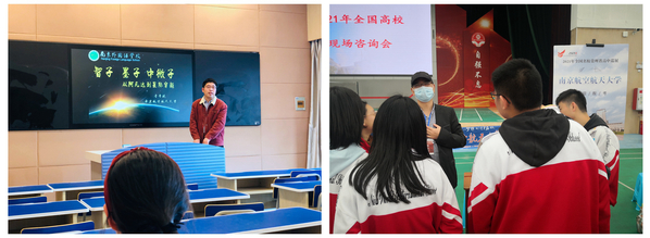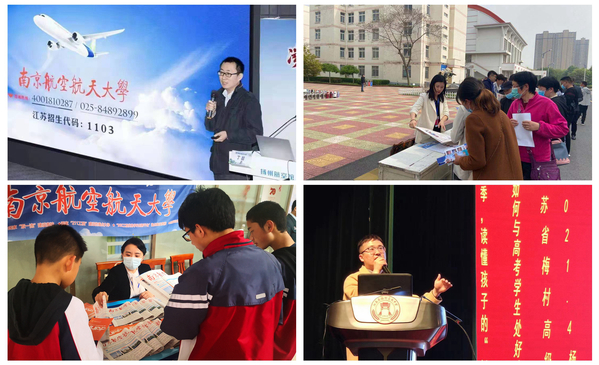 各学院和招生组积极响应,快速落实,通过科普讲座、科技节、招生咨询、招生宣传片等多种形式开展招生宣传。多位专家教授漫谈专业,用通俗的语言将深奥的科学道理讲到中学生心里;招生组将校内科技作品带到中学,用科技引领学生;30多位招生老师不辞辛苦,前往生源基地中学介绍南航招生政策和人才培养优势;优秀学生代表走进中学从自身经历出发,给高中生带去最真实的大学生活;民航学院、经济与管理学院、航天学院、长空学院等制作学院招生宣传片,全面呈现学院实力;邀请常州市平陵高级中学、南菁高级中学书院部五百余名学生走进南航,帮助中学生更好的了解大学校园。