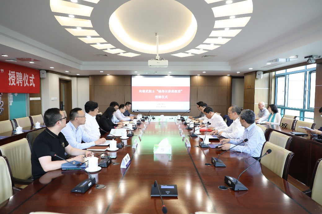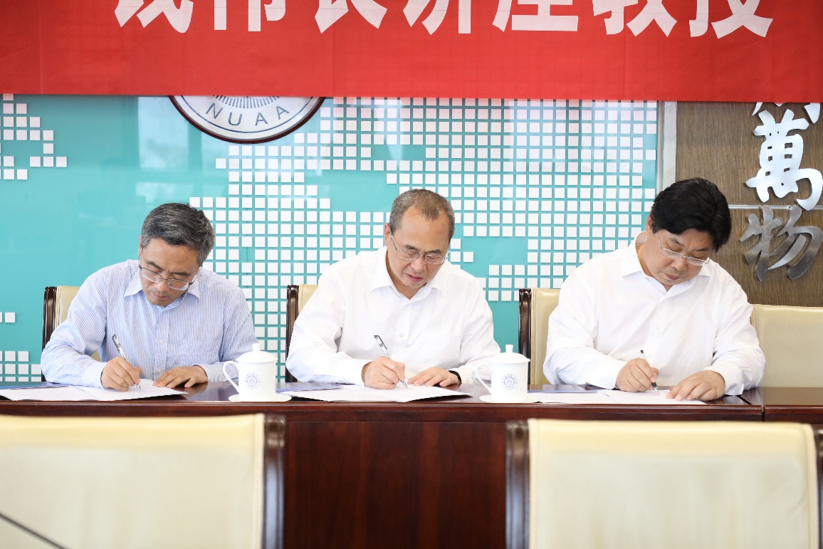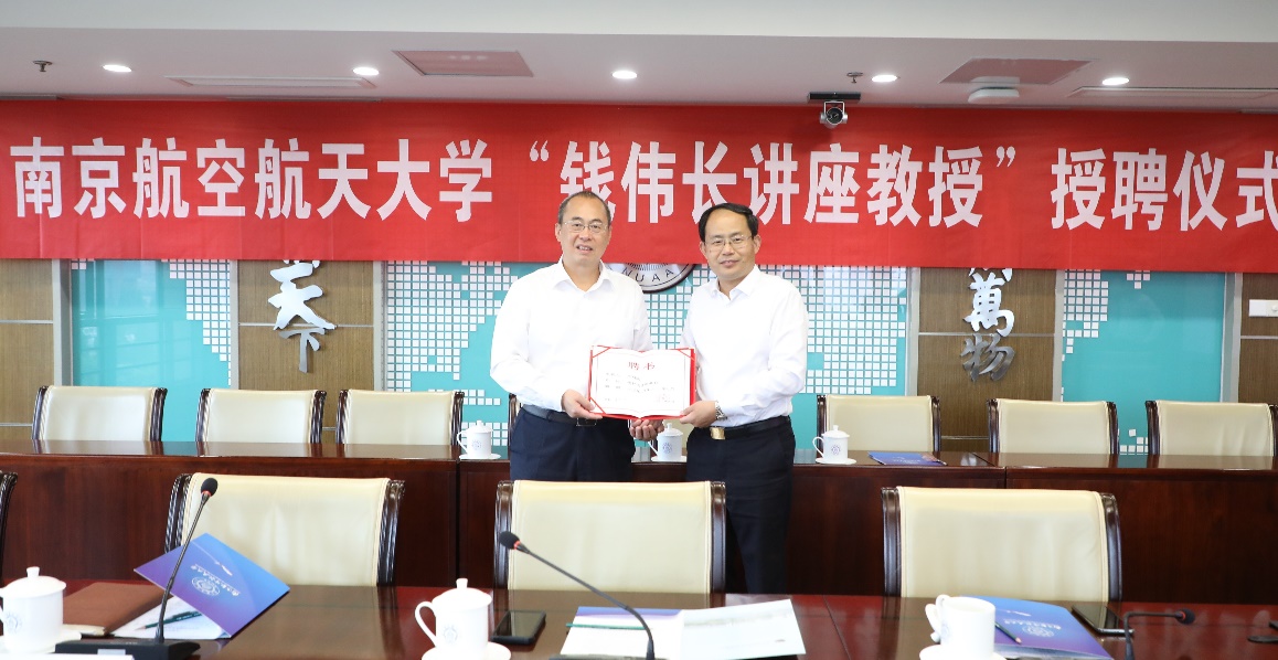 会上,向锦武院士与崔海涛、高存法共同签订了聘任合同;单忠德为向锦武院士颁发南京航空航天大学“钱伟长讲座教授”聘书并为其佩戴了校徽。