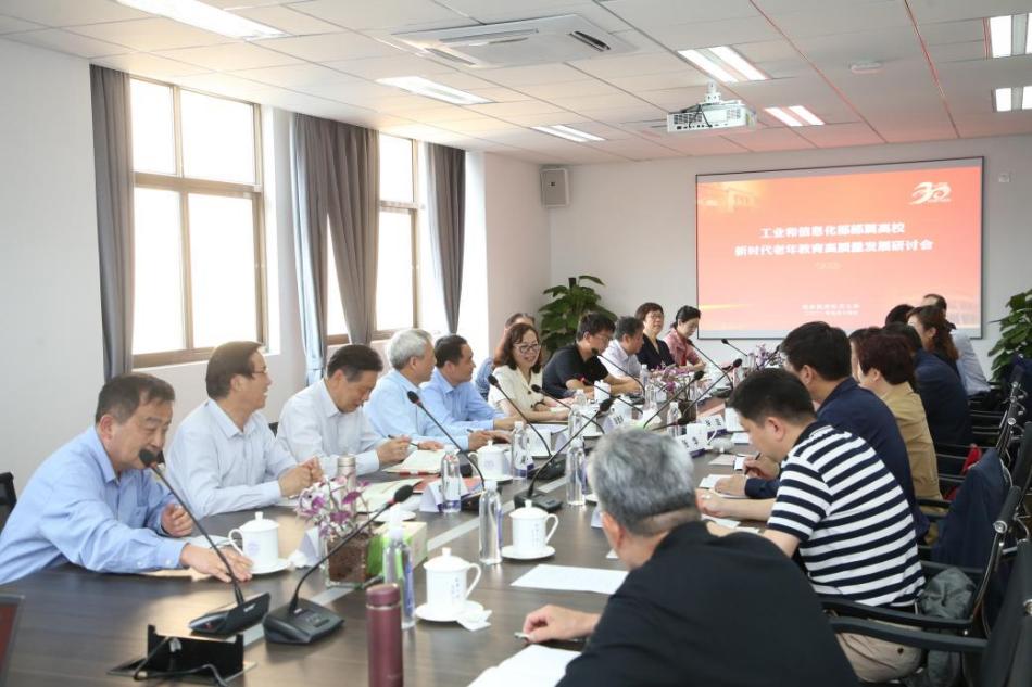 近日,在庆祝我校老年大学建校30周年之际,工信部部属高校新时代老年教育高质量发展研讨会在我校举行。中国老年大学协会高校工作委员会主任、全国第三年龄大学联盟理事长黄刚、高工委副主任、联盟副理事长倪浩、秘书长缪德良,工信部离退休干部局组织协调处处长彭贵兵、部属七所高校离退休工作部门负责人和各高校老年大学负责人参加了研讨会,上海交通大学、上海师范大学、南京大学等兄弟高校老年大学负责同志应邀出席了研讨会。会议由我校离退休处处长张环主持。