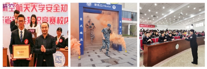 五年来,保卫处/党委保卫部坚持将关口前移,打好安全文化宣教体系建设“突破战”。一是打造安全宣教品牌,形成“学、考、练”全员全覆盖。坚持开展新生安全教育“六个一”活动,强化《安全教育》通识必修课教学,实现全体本科生、研究生、留学生、继续教育新生每年一万余人的全覆盖。2017年起研发使用微信端考试系统,2020年拓展安全教育微课,实现学生在线学习、边学边考、考中巩固。持续开展每年4000余名新生参与的学生公寓疏散逃生演练,对学生安全员、留学生、义务消防队、消防安全重点单位教职员工等重要群体开展多种形式的应急演练和灭火实操培训,提高师生自防自救能力。二是安全宣教有声有影,把“有意义”的事做得更加“有意思”。创新安全活动形式,开展校园安全微视频大赛、“画说消防”漫画大赛、“防电诈”金点子大赛等一系列丰富多彩的创意活动,激发学生主体参与意识,力求“让安全成为学生的习惯”。拓展安全宣教平台,通过微信群、公众号等新媒体平台发布安全资讯1000余条,阅读量超一百万人次;印发安全知识手册两万余册、各类宣传页五万余张,动员师生安装防电诈软件近两万人次。打造南航特色安全品牌,组织开展“415国家安全教育日”、“防范电信网络诈骗宣传活动月”、“119消防宣传月”、“122交通宣传日”等主题宣教活动。