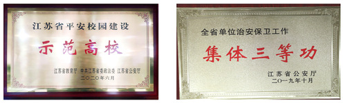 荣获“江苏省平安校园建设示范高校” 荣获江苏公安厅“集体三等功”