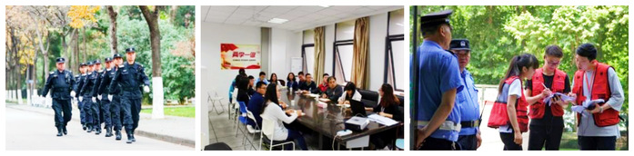五年来,保卫处/党委保卫部坚持依靠师生,打好专兼结合人防体系建设“阵地战”。一是打造校园特勤应急队伍,提升安全战斗力。保卫处以“特别能战斗、特别能吃苦、特别能奉献”为标准,加强130余名保卫干部和校卫队员组成的专职安保队伍建设,选拔精干力量组建三校区校园特勤队,配置警用防暴器材,加强应急处突培训,全面提升校园巡防、纠纷调处、反恐防暴、灭火救援和应急保障能力。二是拓展教职员工兼职安全管理队伍,健全安全人才库。学校院级单位人保干事、学生辅导员、公寓和物业管理员等600余名兼职安全员队伍,长期奋战在基层一线,在安全检查、矛盾化解、隐患消除等方面发挥了重要作用。三是扩大学生安全志愿者队伍,织就安全覆盖网。2017年起学校在学生班级中设置班级安全员,2018年成立大学生安全服务中心,这两支学生安全志愿者队伍成员已达1000余人,围绕学生安全管理、安全调研、安全宣教等工作,构建起横边纵底的学生安全网络。