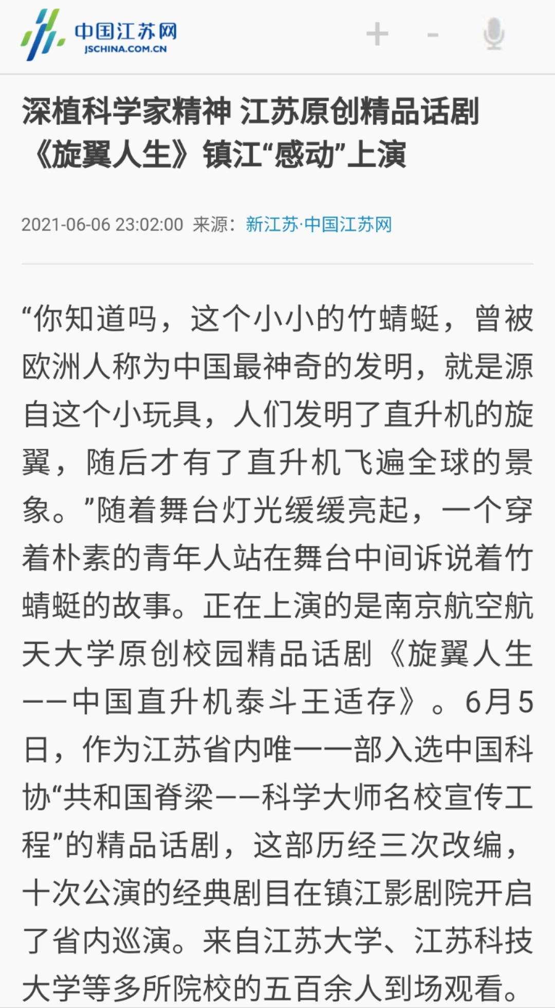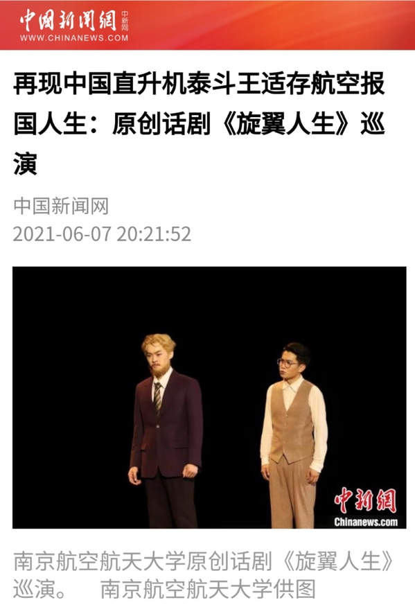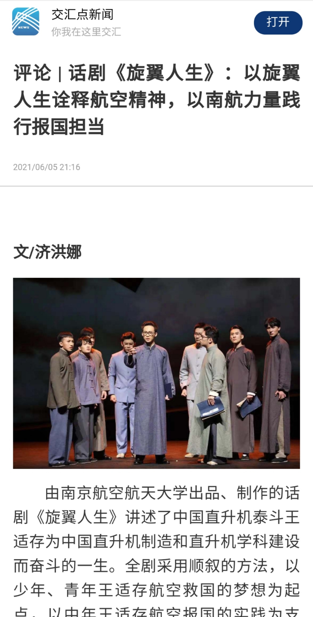 新华日报交汇点:评论 | 话剧《旋翼人生》:以旋翼人生诠释航空精神,以南航力量践行报国担当