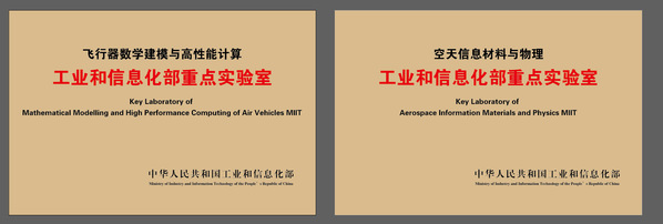 “飞行器数学建模与高性能计算”、“空天信息材料与物理”两个工信部重点实验室