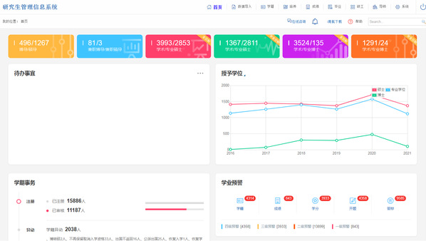 为推进管理的科学化、规范化、精细化,研究生院结合研究生教育管理的最新要求,不断建立健全制度体系。五年来,共制定/修订相关制度59项,并汇编《学位与研究生教育工作手册》《研究生招生工作实务及文件汇编》《研究生手册》,方便师生查询。大力推进研究生教育管理信息化建设,建设并启用最新版研究生管理系统,新版研究生管理系统满足师生日常服务、教育质量监控、规范管理、数据共享、决策支持、资源开放等现代化办学需求;利用信息化手段不断优化业务办理流程,目前90%的业务流程实现了在线办理;顺利实施研究生院网站更新改版,新版网站的设计风格更加美观大方、模块更加丰富,同时提供了丰富、实用的功能入口,尽可能方便师生使用。