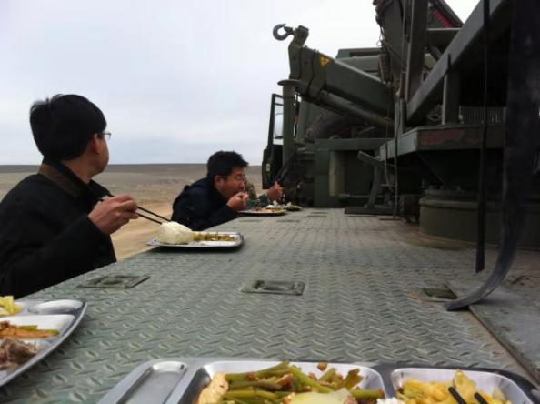 外场试验中进行设备调试 试飞团队顶着风沙就餐