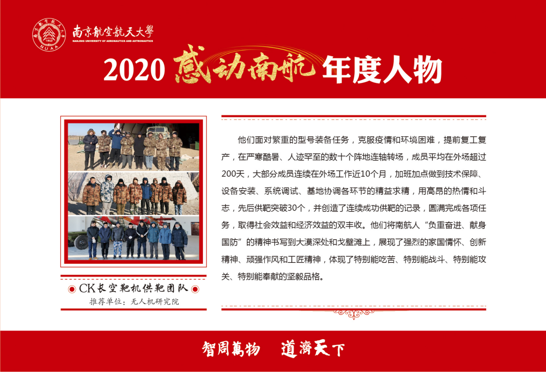 CK长空靶机供靶团队荣获“感动南航”年度人物