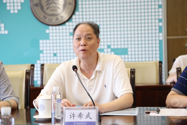 许希武对刘兴平一行表示欢迎,并就我校基本情况、学校振动工程学科发展历史、中国振动工程学会及校科协基本情况作了简要汇报。他表示,学校历来重视高校科协和学会工作,长期以来对挂靠的全国学会、省级学会给予人、财、物的全方位支持,全力保障学会的正常运行和持续发展,南航科协和中国振动工程学会近年来在学术交流、人才举荐、科学普及等方面取得了一定的成绩,希望中国科协和省科协继续指导、关心我校科协和学会工作。