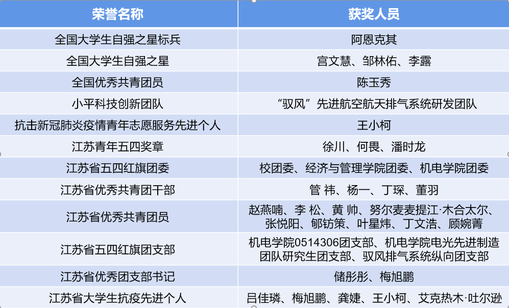 五年来,在学校党委和共青团江苏省委的正确领导下,围绕习近平总书记对共青团增强“政治性、先进性、群众性”的要求,南航共青团不忘初心、攻坚克难,围绕学校中心工作、立足青年成长成才实际,坚持以“与南航青年共成长”的宗旨,团结带领全校青年坚定青春理想、点燃奋斗激情,为助力学校“双一流”建设和实现“十三五”规划目标贡献力量。“十三五”期间,校团委荣获全国五四红旗团委荣誉称号,连续三年实现江苏省五四表彰奖项全满贯。