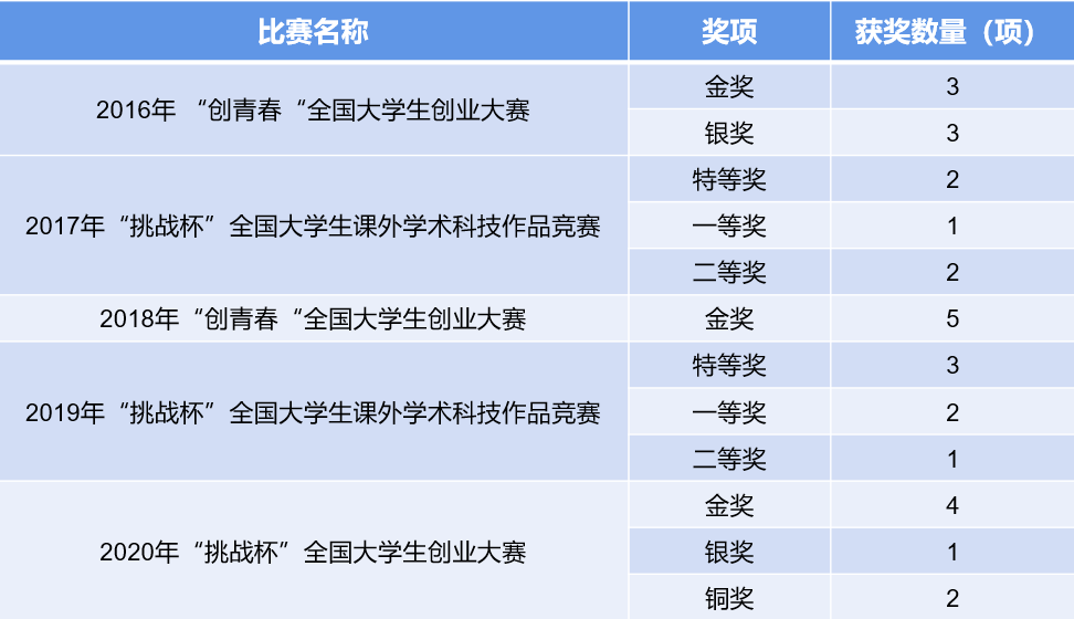 “十三五”期间我校“挑战杯”赛事所获奖项