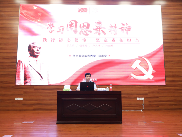6月21日下午,校党委书记郑永安在将军路校区以“学习周恩来精神,践行初心使命,坚定责任担当”为题作党课报告。校党委副书记刘宇雷主持了专题党课。